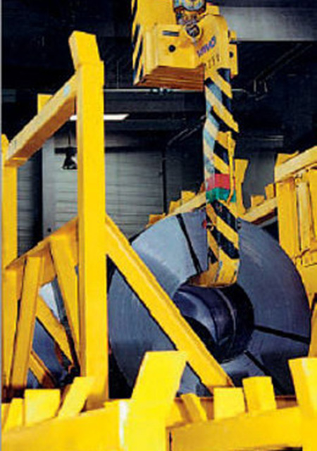 When storing coils and slit strips, the focus is on occupational safety. The coils / slit strips are stored in a horizontal axis position and fixed by stabilizers. The available space should be used to the maximum. For this, WIMO® Hebetechnik offers you 2 variants: storage troughs or storage containers.