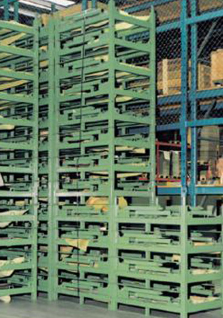 You can store coils or split strips in the storage troughs. The trapezoidal support prisms prevent the coils or slit strips from rolling away to the side. The stabilizers consist of square hollow profiles with a high section modulus. The coil containers are stackable and can be folded up to save space when you don't need them. They are easy to transport by forklifts.