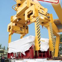 The two centring pins fix the pressing tool tongs in the uppermost lifting position. This enables precise positioning in the direction of crane and cross travel. Together with the integrated path measuring systems, this enables the automatic storage and retrieval of pressing tools.