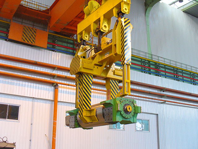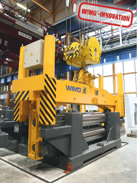 In the “rolling” production process, materials are formed using rotating rollers. Both the working rollers and the back-up rollers that are used must be regularly ground. To ensure these rollers do not become damaged, they must be transported from the tool to the grinding machine in a particularly careful process. This is because some of them have a particularly sensitive surface. Roll tongs from WIMO® are an ideal solution for this challenge.