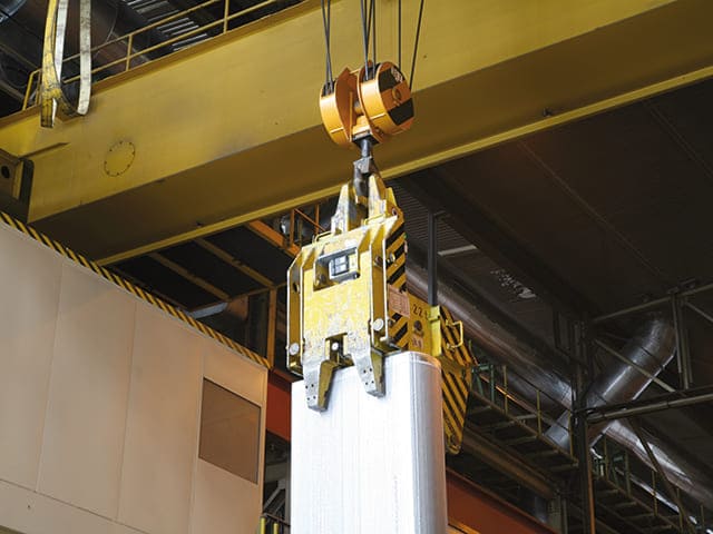 The individually adaptable gripping system also allows different slab diameters to be transported.